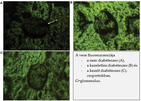 Eredmények: Hat héttel az Alloxan injekció beadása után szignifikánsan megemelkedett a szöveti fluoreszcencia,